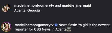 /Madeline Montgomery left Gray’s WANF Atlanta, which was the CBS affiliate. She is now headed to the CBS station in Atlanta.