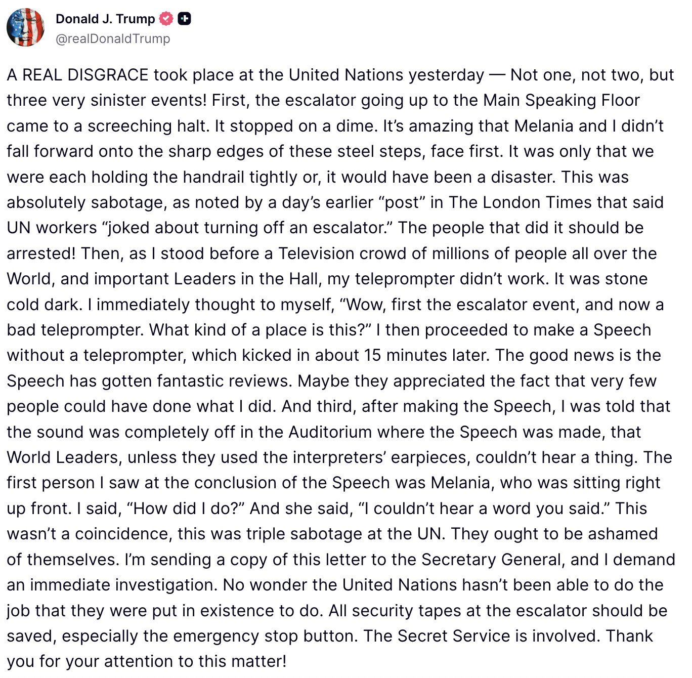 I want the Secretary General and the secret service to start an immediate investigation. The people that did it should be arrested!