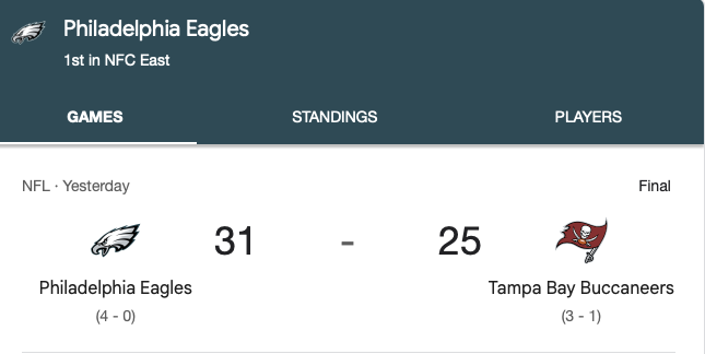 All the other stations in Philly, which are not the official station of the Eagles, got the score correct, which was 31-25.