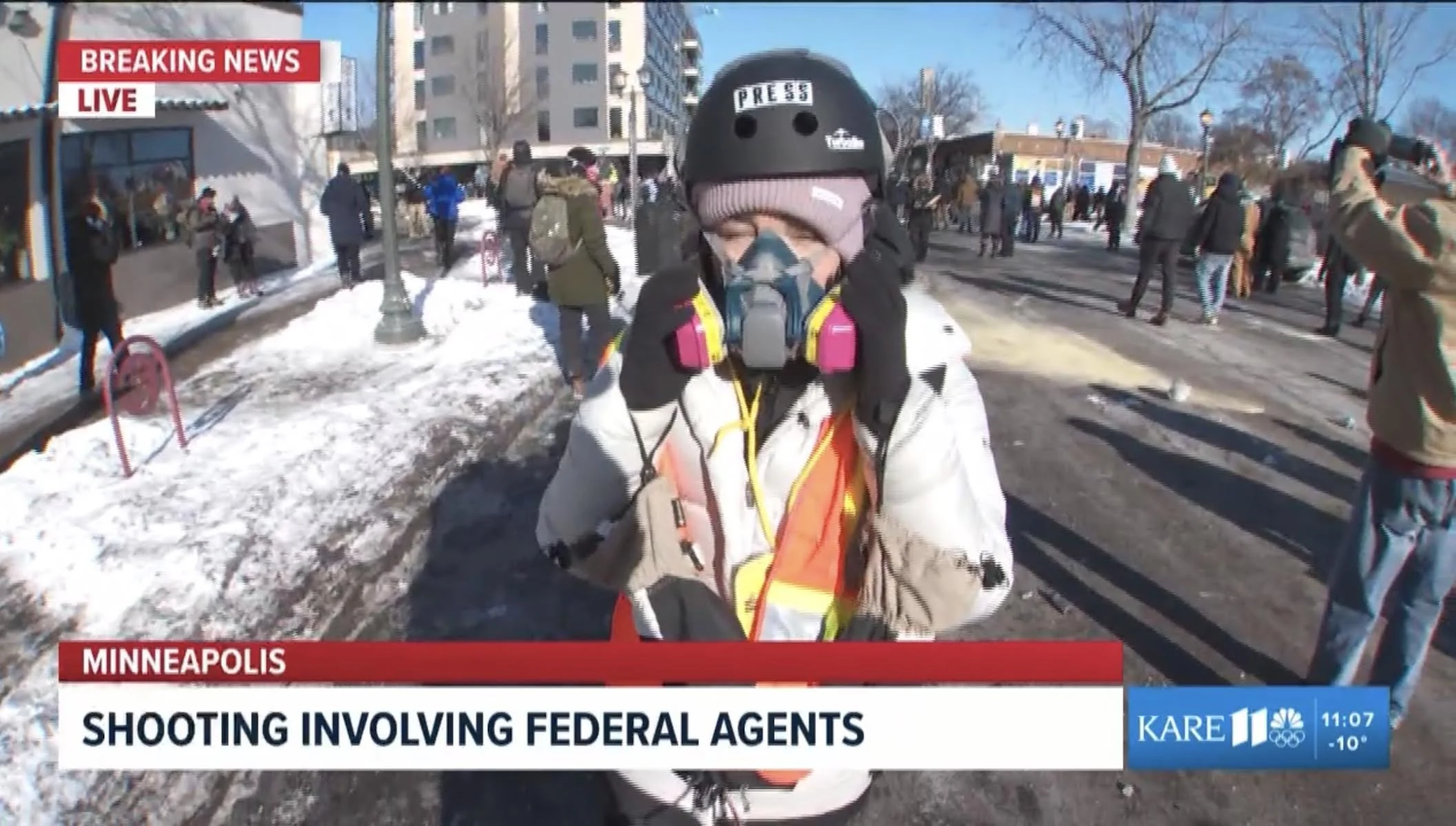 But in Minneapolis, news crews are wearing protection, mainly to protect themselves from gas and projectiles fired near or at them by federal officials from the United States.