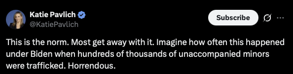 She certainly makes it seem like this happened under the Biden administration. And while, I’m sure there were cases like this that happened under Biden, this particular case took place under the Trump administration.