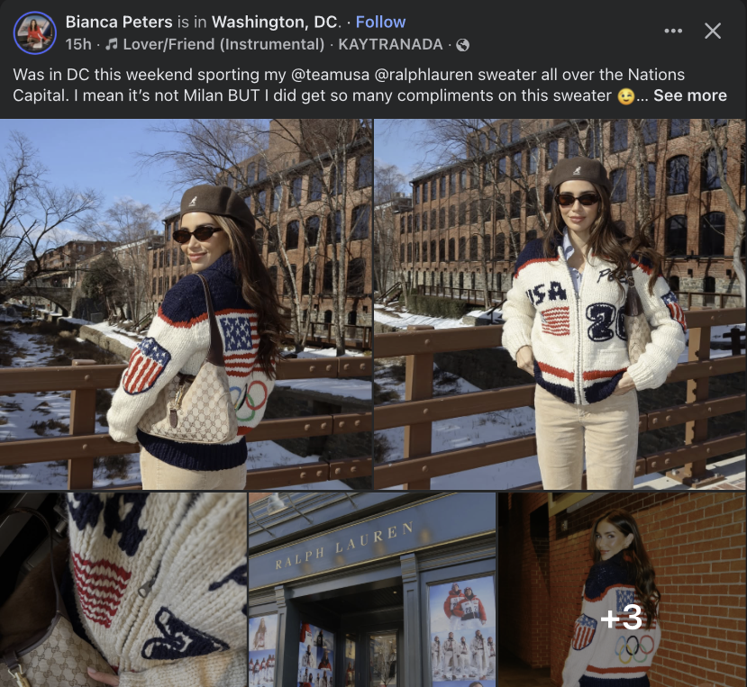 There is no reason to spend your entire life training for the Olympics, when you can just put on a Ralph Lauren sweater, tag the company and walk around DC and take selfies.