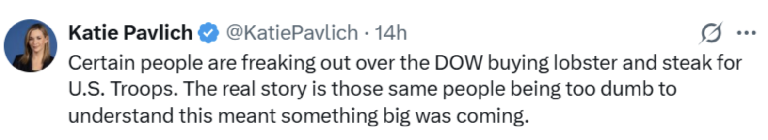 Also, she writes, “this meant something big was coming.” This spending spree was from back in September of 2025. That was 6 months before the U.S. bombed Iran.