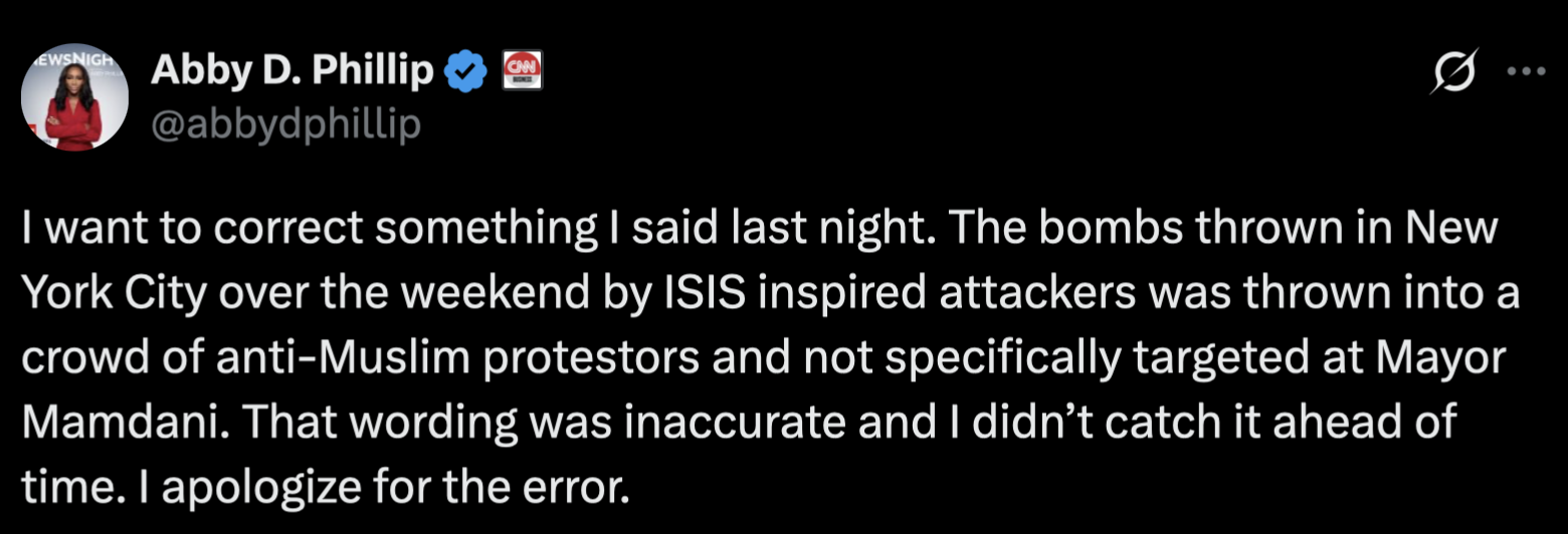 Then, on the very same story, CNN host Abby Phillip posted that she screwed up on her information as well.