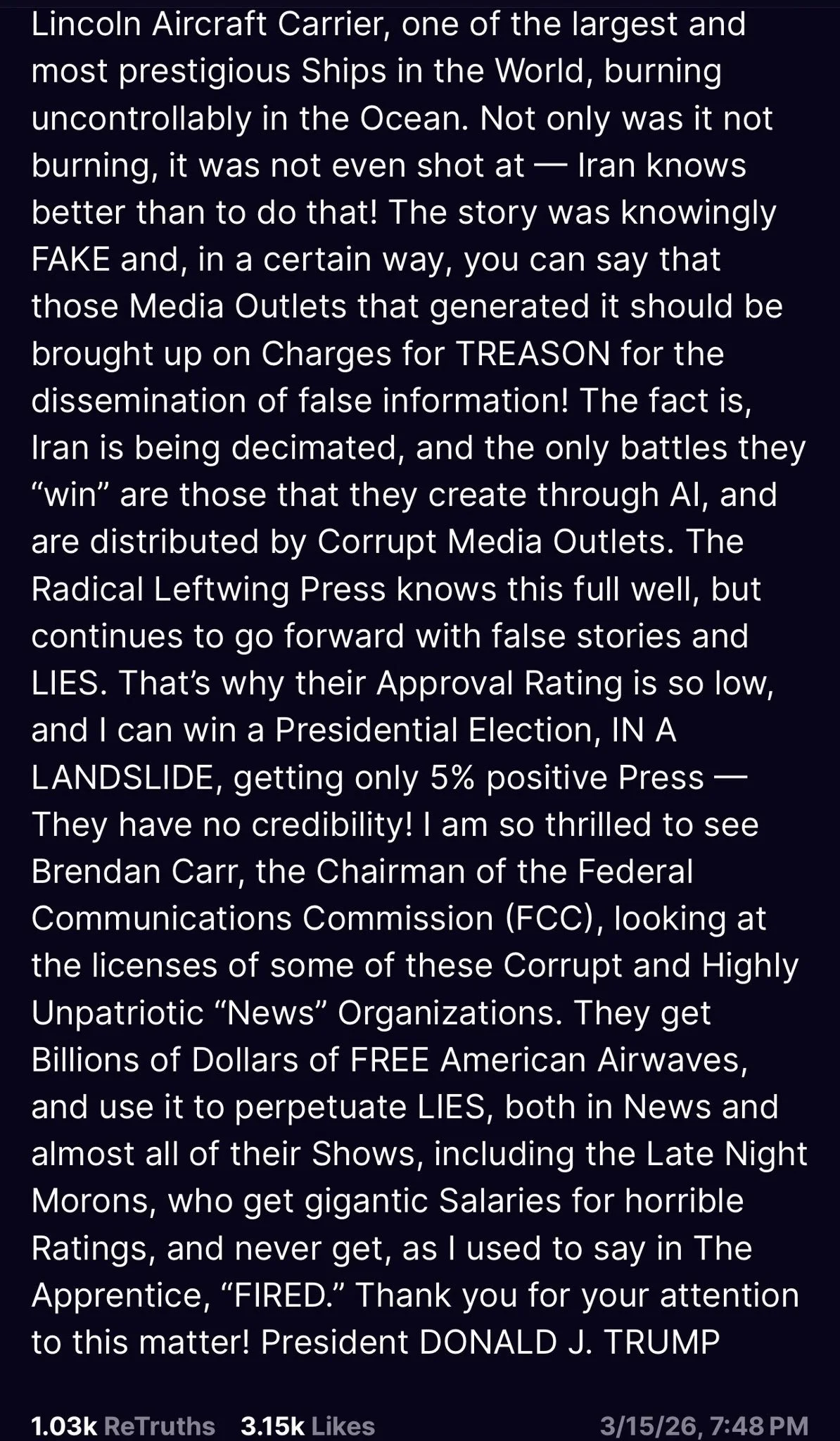 The President of the United States wants the media in prison. The first amendment is being stepped up and squashed by Trump and his FCC.