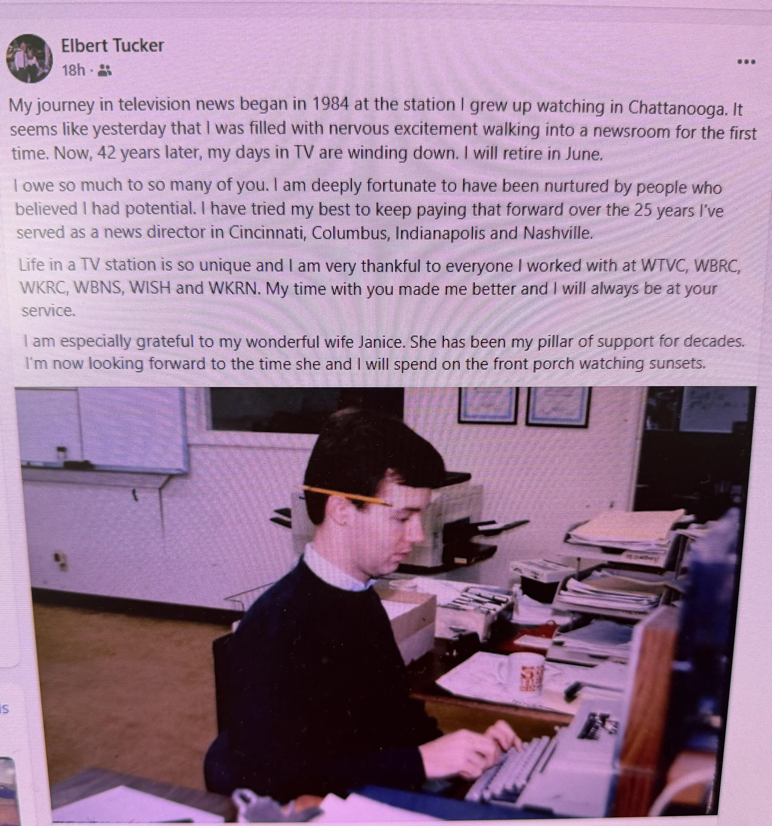 /WKRN (Nashville) News Director Elbert Tucker sent an email to the staff, announcing that he will be leaving the Nexstar station in June.