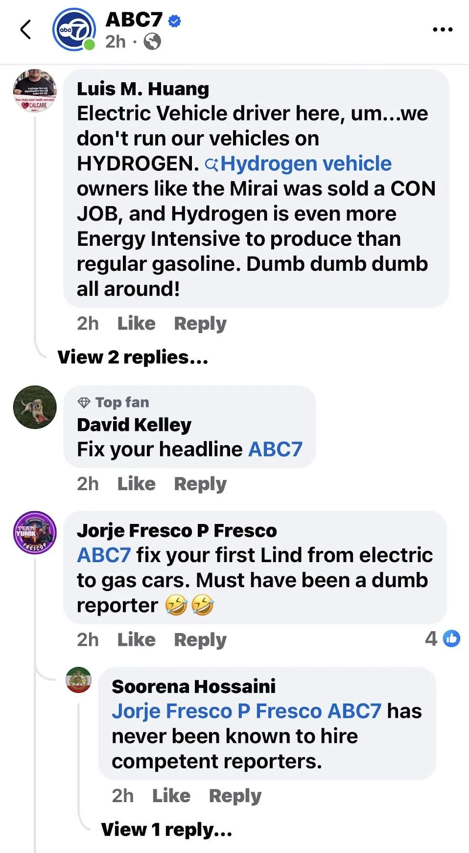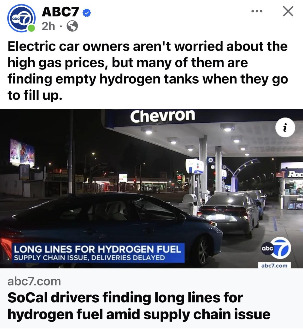 /As someone that has driven an electric car since 2012, I can assure you, of the 4 electric cars that I have owned, not one of them, or any electric car that I know of, runs on hydrogen.