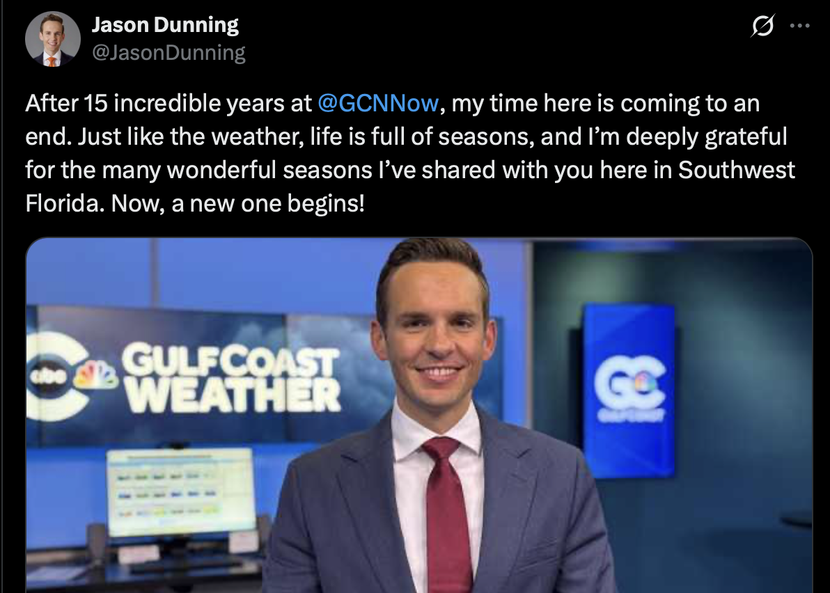 /WBBH (Ft. Myers) Morning Meteorologist Jason Dunning is leaving Southwest Florida and headed to Milwaukee.