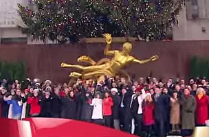 /Each year, the WNBC Anchors, Reporters and other station employees gather at the Rockefeller Center ice rink to sing Christmas carols.