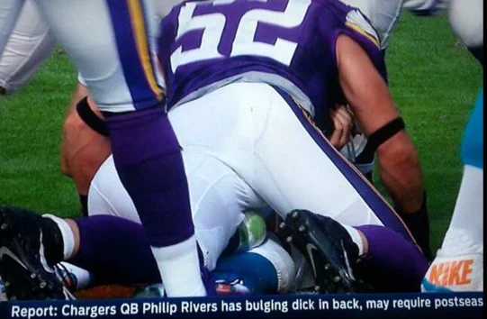 According to the lower third, San Diego Charges Quarterback Phillip Rivers has a "bulging dick."