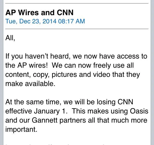 /About an hour after FTVLive posted the story that the Gannett stations would be dropping CNN Newsource, the company sent out an email to its employees.