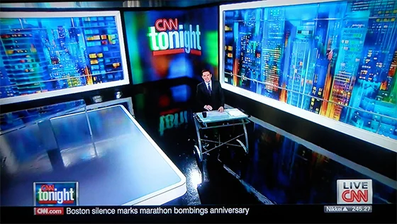 Newscaststudio says that CNN is using the former studio of “Piers Morgan Tonight,” but it looks like a new desk wasn’t ready in time for the debut.