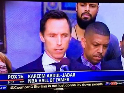 /According to KRIV Fox Houston Kareem Abdul-Jabar has shrunk a few inches since his playing days. He also turned white.
