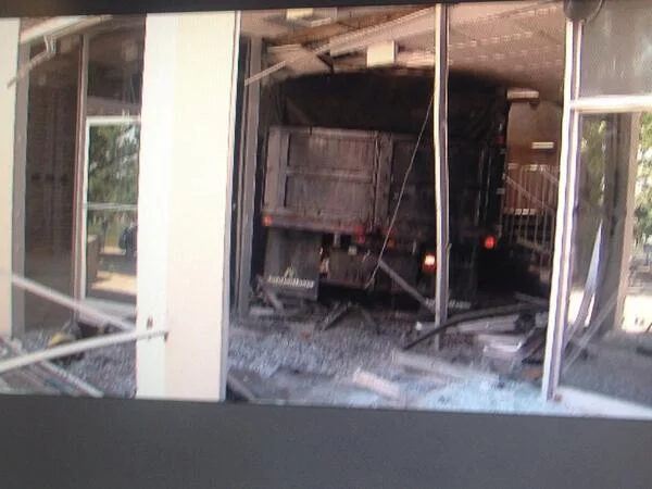 A man is still believed to be inside station after crashing a truck through station's front entrance.