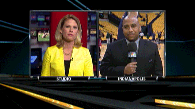 Comcast Sports Net Washington Reporter J. Michael took one to the mellon while talking about the Wizards-Pacers series on live TV.
