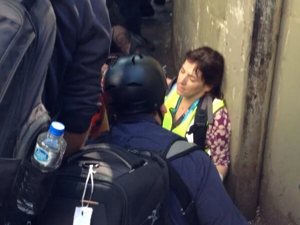 Reporter Shasta Darlington and her crew were reporting on one of the many protest, when police fired tear gas and stun grenades. One of the canisters hit CNN Producer Barbara Arvanitidis (right).