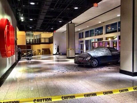 /FTVLive told you early this morning that a Mercedes with Florida tags, drove onto the sidewalk and right into the lobby at CNN Center.