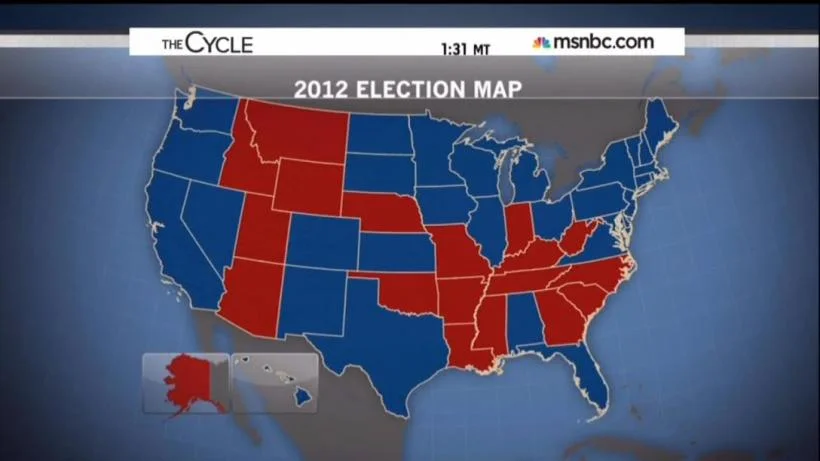 /Yesterday, on MSNBC's 'The Cycle' they showed an electoral map for 2012 and people in Texas will be shocked to find out they voted Democrat.