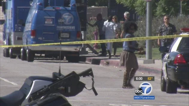 Glendale police searched the station with bomb-sniffing dogs and found nothing. KABC broadcasted the 4pm newscast from outside the station.