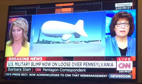 /A Military blimp has broken free and is floating somewhere over Pennsylvania (maybe).