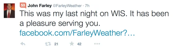 In an emotional farewell, John Farley told viewers that after 5 years at WIS-TV, his contract wasn't renewed.