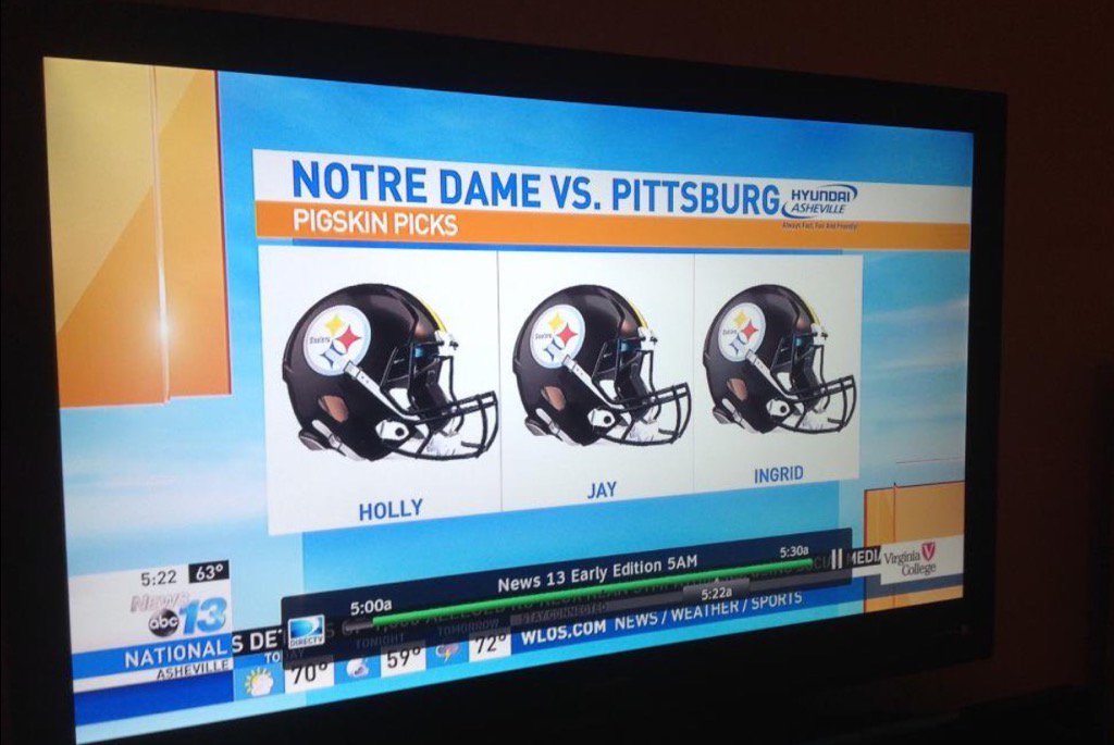 /WLOS (Asheville) Anchors are picked the Pittsburgh Steelers to beat Notre Dame Fighting Irish on Saturday.