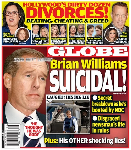 /If you believe the tabloid the Globe (and really who doesn't?) it appears that NBC Anchor Brian Williams is not taking his suspension very well: