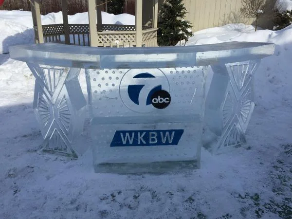 They built and ice desk and made their Anchors stand behind it to anchor the newscast on Monday night.