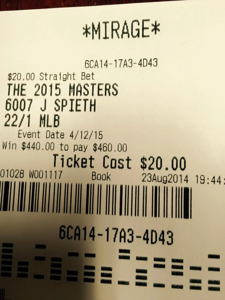 21 year old Jordan Spieth won the Masters with a record breaking performance and while we are not going to say that we predicted that he would win the Masters. Back in August, we laid down $20 bucks on Spieth winning the Green Jacket at the Mirage.
