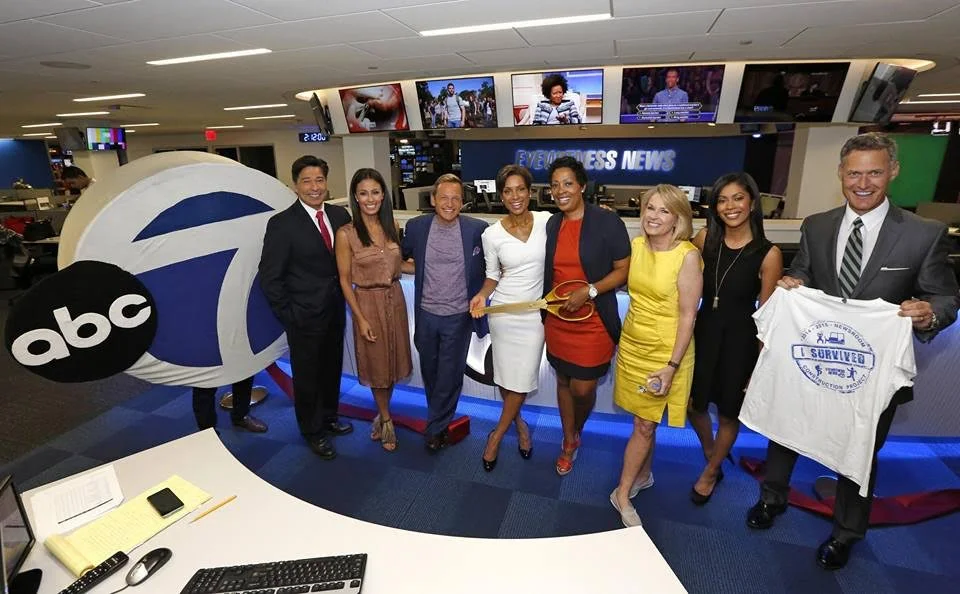 /The news staff at WABC has been living in sawdust and paint fumes for quite awhile. But, the station finally cut the ribbon on their brand new newsroom and everyone is happy.