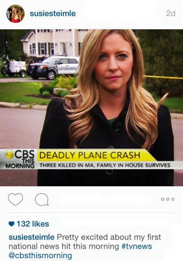 /When will these kids learn? Or maybe a better question, when will news directors stop hiring kids with only a few years experience to work in major markets? The latest screw-up courtesy of Susie Steimle, a reporter at WBZ in Boston. Three people are dead, but Susie is 'pretty excited". Check out her Instagram post:
