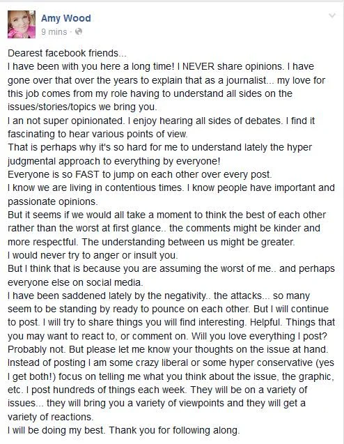 /WSPA's Amy Wood has just figured out that social media can be a very mean place. Wood has posted some stories to her Facebook page and people have made some "not so nice" comments to her.