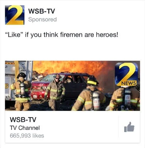 They are doing it by taking out these cheesy sponsored ads asking folks to 'LIKE' firefighters, police, and paramedics.