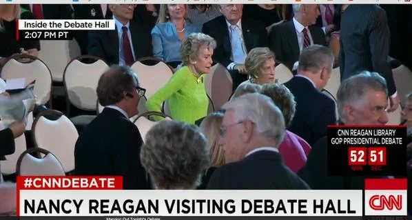 Blitzer was happy to announce that Nancy Reagan was in the debate audience. CNN even put up the chyron that the former First Lady was in the debate hall.