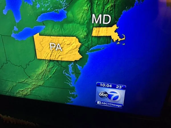 This time the station moved the state of Maryland just to the east of New York. Maryland has taken the place of Massachusetts.