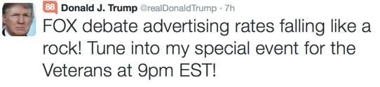 The Trump organization says it will host the 'special event' at Drake University, to benefit veterans. Coincidentally, it's at the same time as Fox' televised debate. According to "The Lemon", CNN will broadcast Trump's event:
