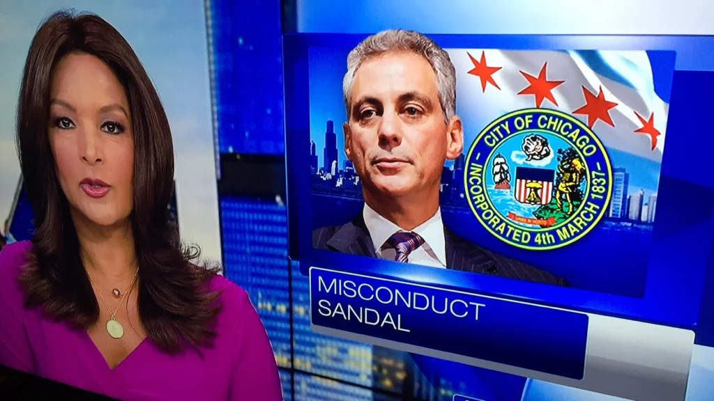 According to the station, the Mayor is in a "Misconduct Sandal". Of course he is, who wears sandals in Chicago in the Winter time.