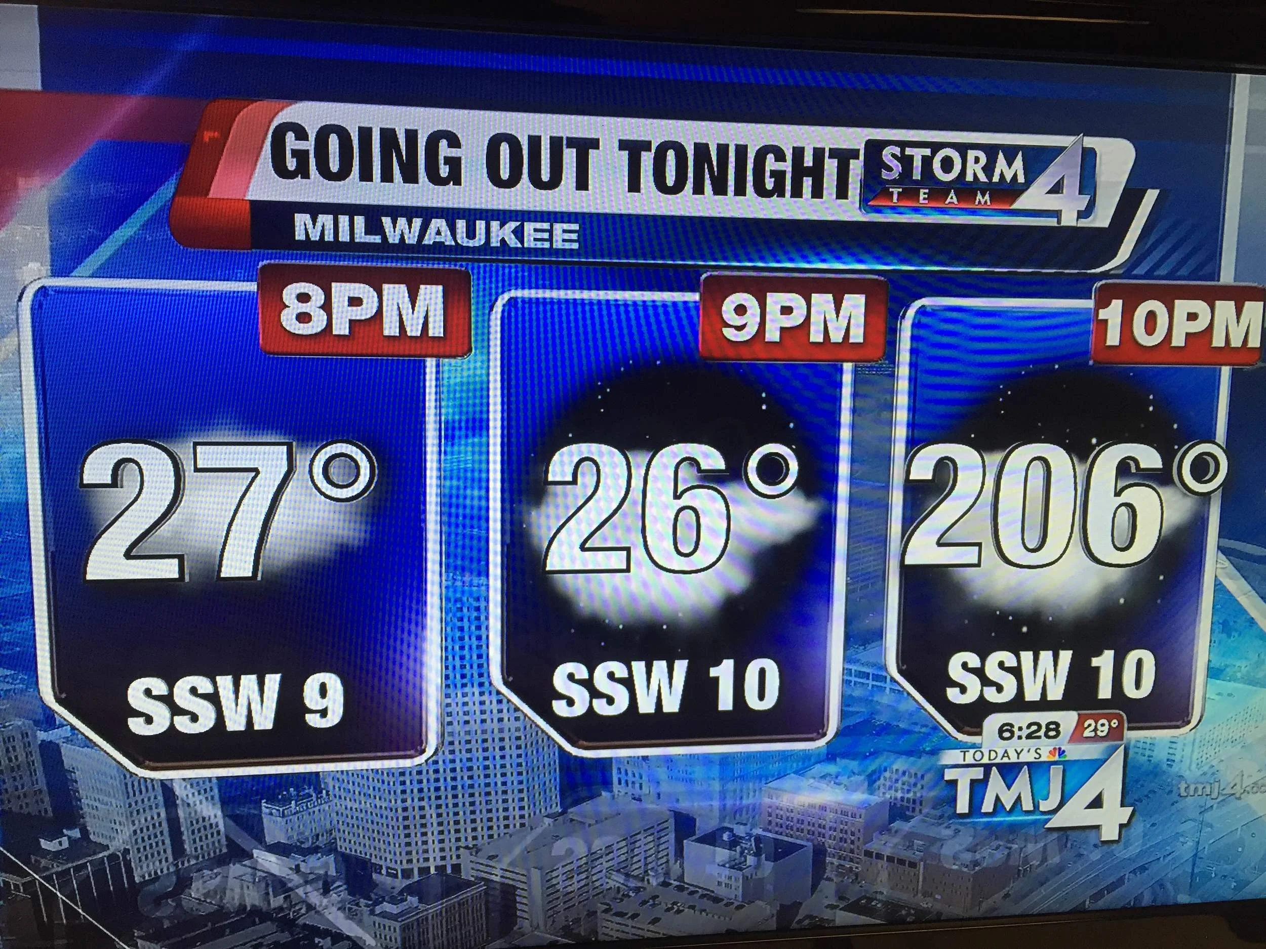 Like 206 degrees hot! That's 180 degree jump in temperature in an hour.