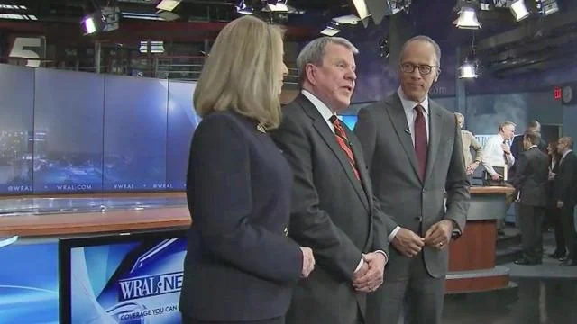 When asked about the new partnership with WRAL, Holt responded just like the marketing department wanted him to. "It's so critical because this station represents the best in broadcast journalism and it also represents the best of a station that is part of the fabric of the community. You serve your viewers on every level," Holt said.