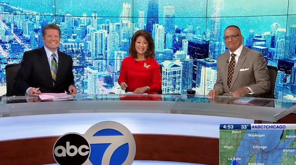 Despite the fact that it was not snowing in the Chicago at the time, behind the anchors you could see quite a bit of the white stuff (as anchors like to call it).