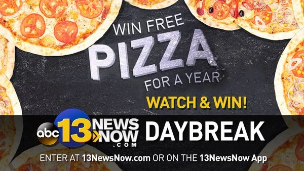 Yep, WVEC's (Norfolk) morning show is giving away a year of free pizza, because you know, who doesn't wake up to a big slice of pizza each morning (well, actually no one except hungover college kids).