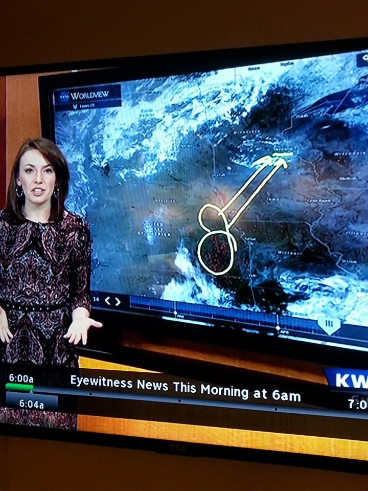/A Kansas Meteorologist might have been talking about the weather, but we think she had something else on her mind.