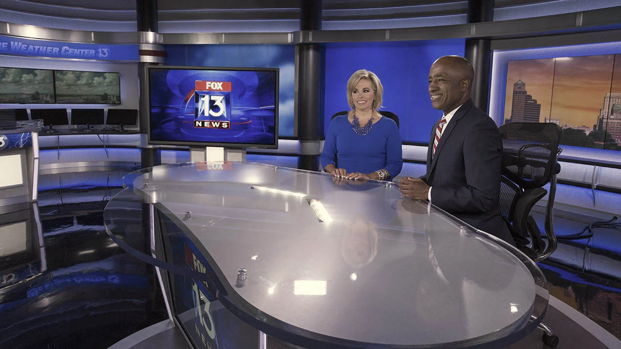 Of course it would have been a bit strange if Memphis viewers were watching the WHBQ news anchors sitting in front of an Orlando skyline. So, the Memphis station changed out the skyline shots behind the Anchors.