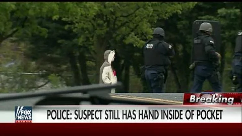 People were evacuated from the building and Baltimore PD SWAT arrived. WBFF's assistant news director, Casey Clark, Periscoped the whole thing. The man comes out of the station at around 3:06. Then police open fire.