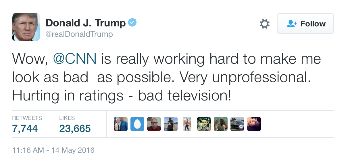 As for Trump, this is how he feels about the media that has given him billions and billions in free advertising and basically call the shots and almost every network.