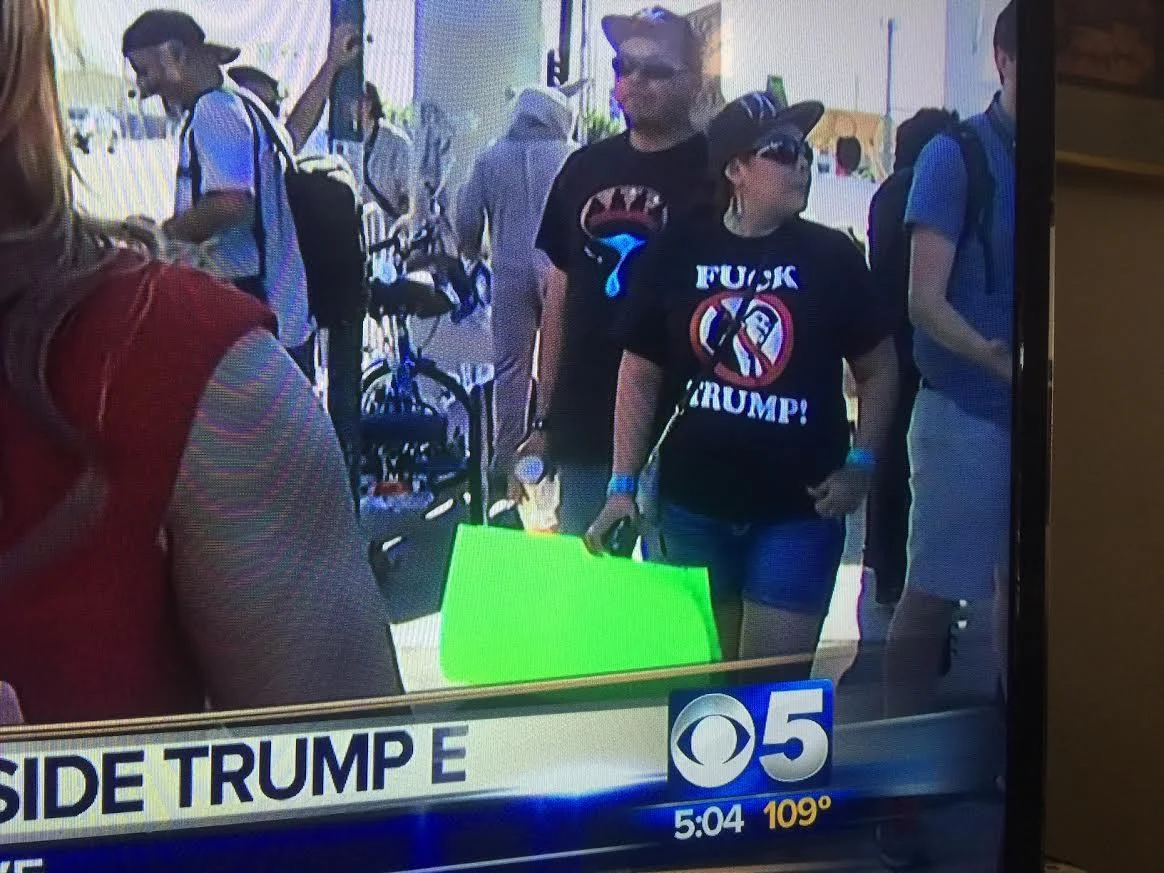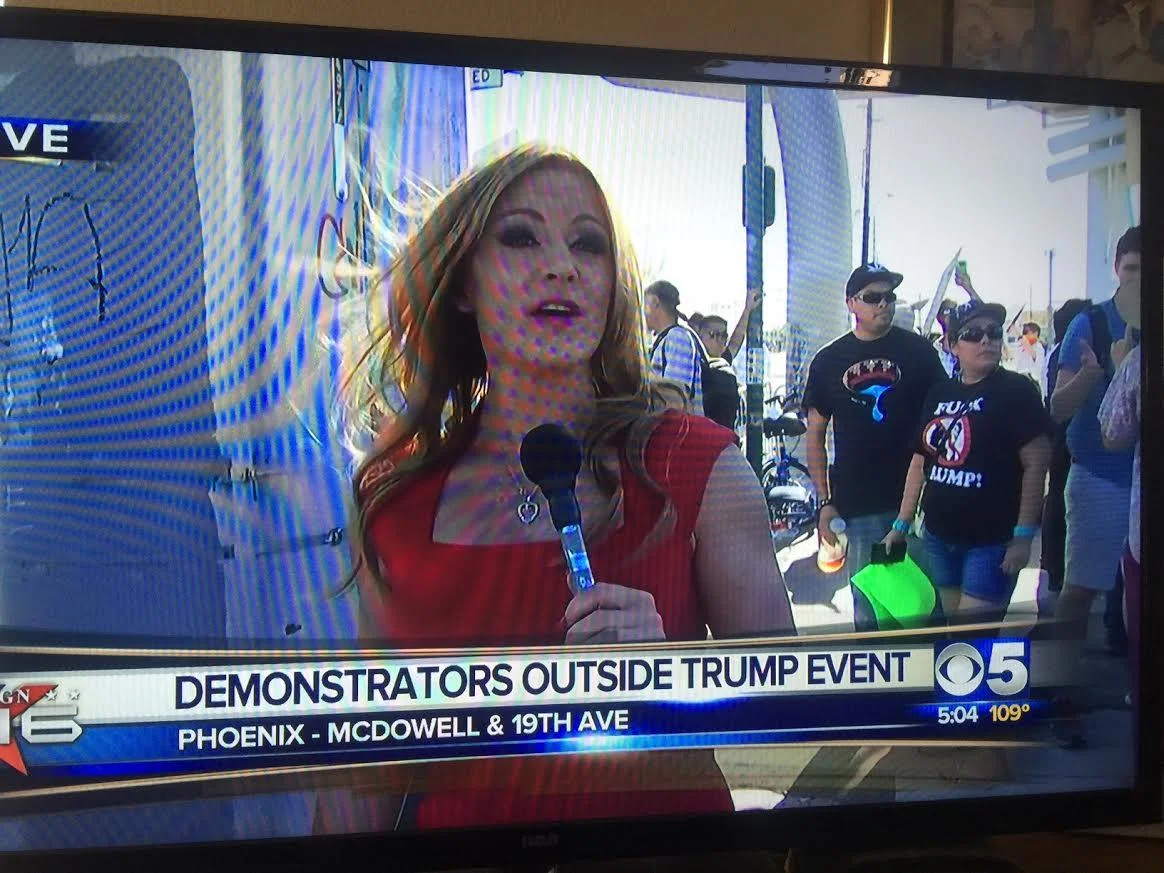 KPHO did a live shot covering the Trump protestors that turned out. While the station did not interview the woman in the black shirt, I think it was clear to viewers where she stood.