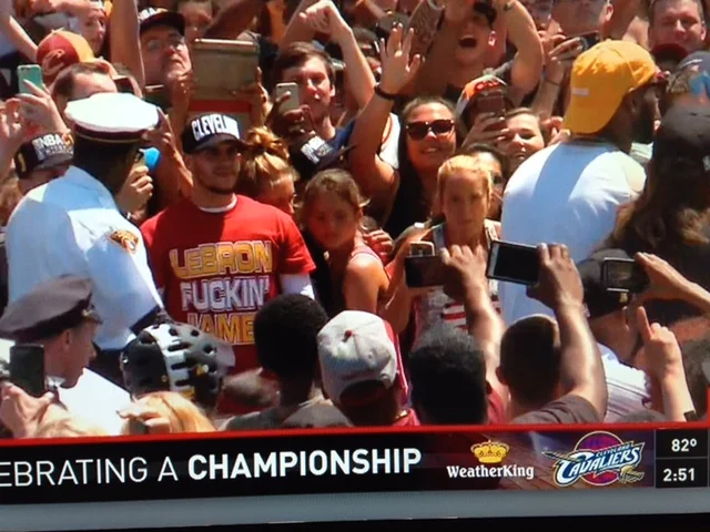 Check out this genius at the Cavs Championship parade. Anyone watching WKYC got to see it, too. We'll bet, though, that more people will see it on FTVLive.