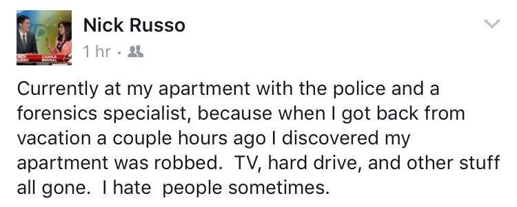 BTW- Forensic specialist? For a stolen TV? Ahhhh...life in a small market.