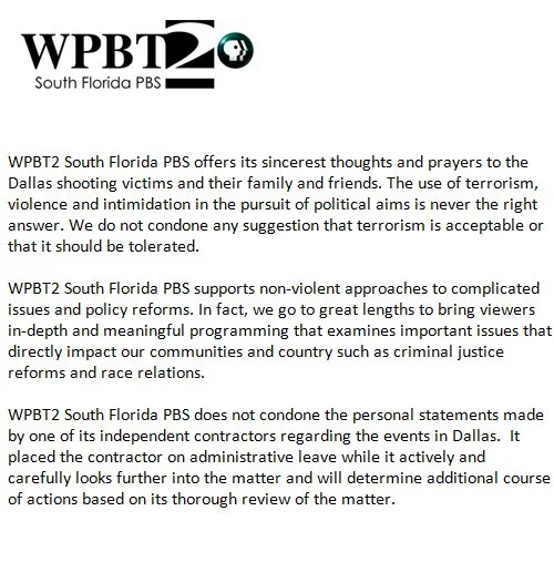 Kalyn Chapman James who works for WPBT, the PBS station in South Florida has been suspended after calling Dallas sniper Micah Johnson a "martyr" for killing five cops.