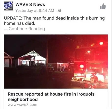 According to WAVE (Louisville) the dead guy that was pulled from the house fire....well he has now died.
